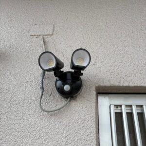 施工完了後、夜間に点灯確認を行ったところ、2方向に広がる強力なLEDの光によって、敷地の隅々まで見渡せるようになりました。お客様からも「以前のライトとは明るさが全く違い、夜の帰宅時も安心できるようになった」とのお言葉をいただきました。センサーライト一つを新しくするだけで、暮らしの安心感は大きく向上します。